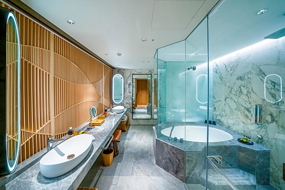 Featuring contemporary Japanese-designs and handcrafted bamboo decorations, this spacious twin room has a private bathroom fitted with marble flooring. A flat-screen TV and Bluetooth speakers are provided. Guests staying in this room get access to the hot spring bath, swimming pool and fitness center.